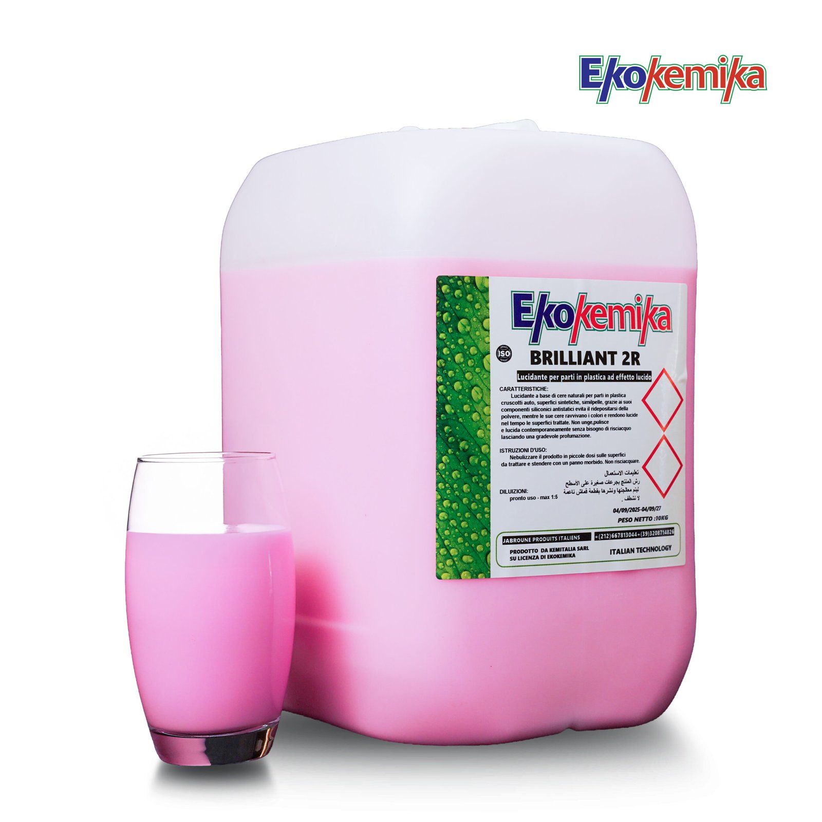 Ekokemika BRILLIANT 2R est un produit lustrant spécialement conçu pour raviver et faire briller les parties en plastique des véhicules. Il redonne un aspect brillant et soigné, protège les surfaces et laisse une finition durable sans rinçage. Poids net : 10 kg.