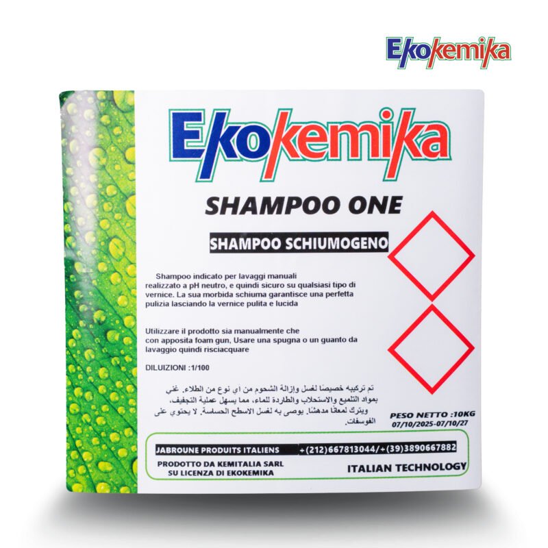 Développé selon la technologie italienne, Ekokemika SHAMPOO ONE est la solution idéale pour un lavage manuel efficace, sûr et professionnel, répondant aux exigences des centres de lavage et des spécialistes de l’entretien automobile.